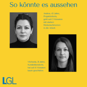 Deine Ansprechpartnerinnen: Dr. Manuela Sirrenberg und Simone Sailer, zwei Arbeits- und Organisationspsychologinnen des LGL, setzen sich für gesunde Arbeitsbedingungen ein und gestalten die Inhalte zu dem Bereich psychische Belastungen bei der Arbeit in der genannten Ausstellung.